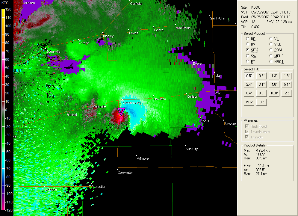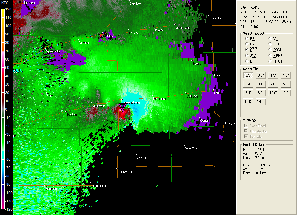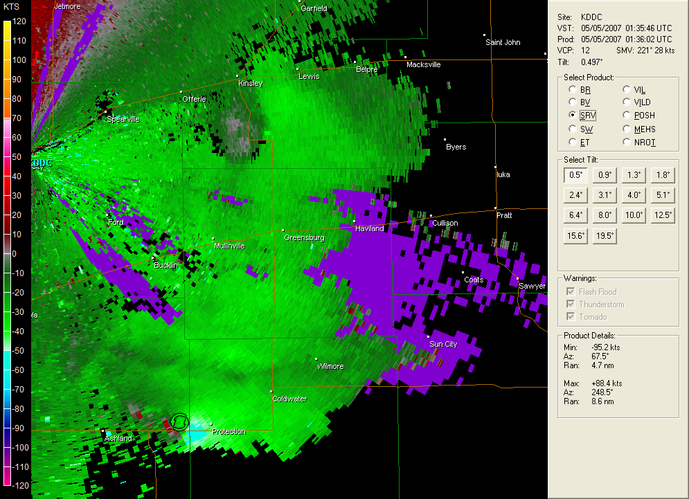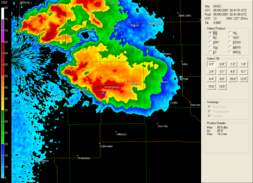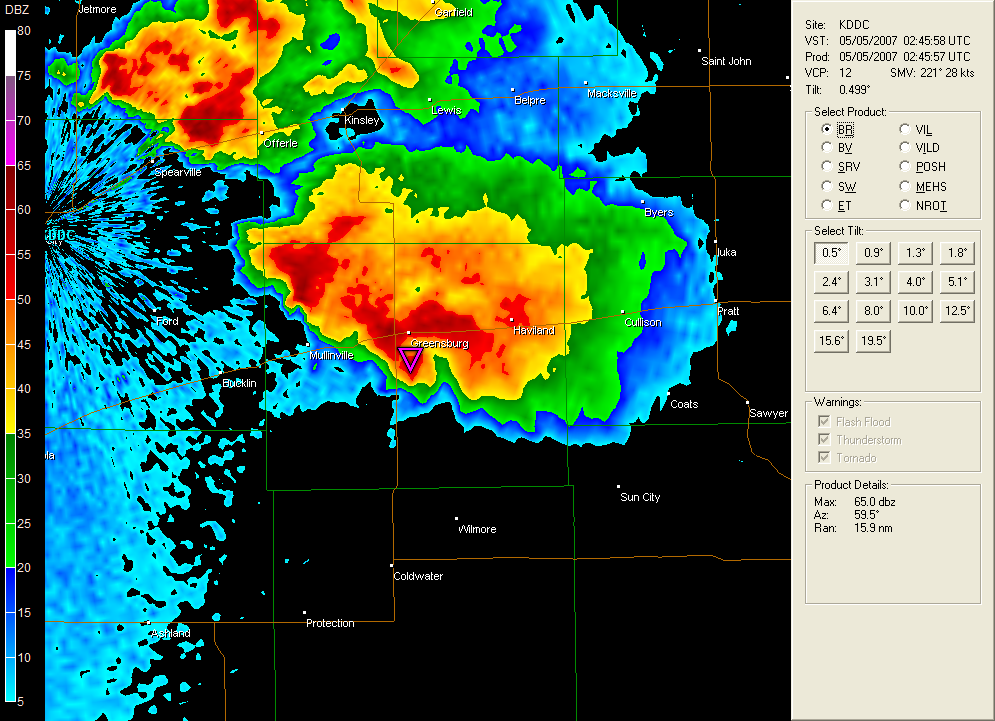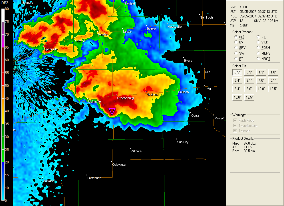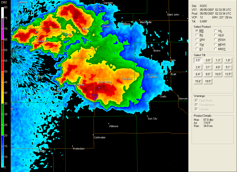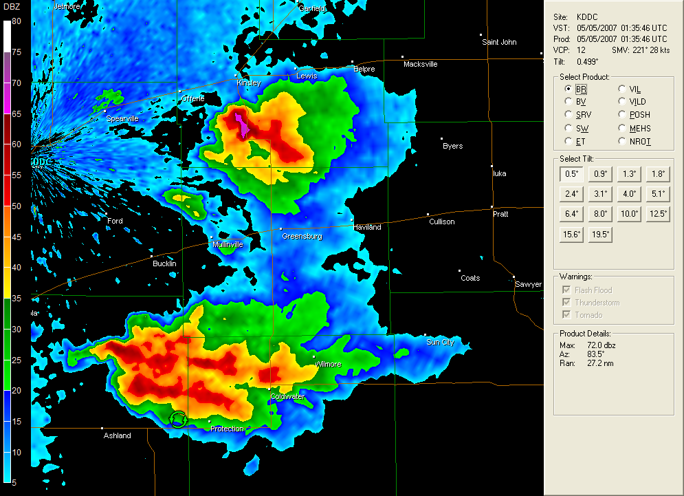 Radar imagery from the Greensburg KS tornado event (831pm-1006pm local time)
