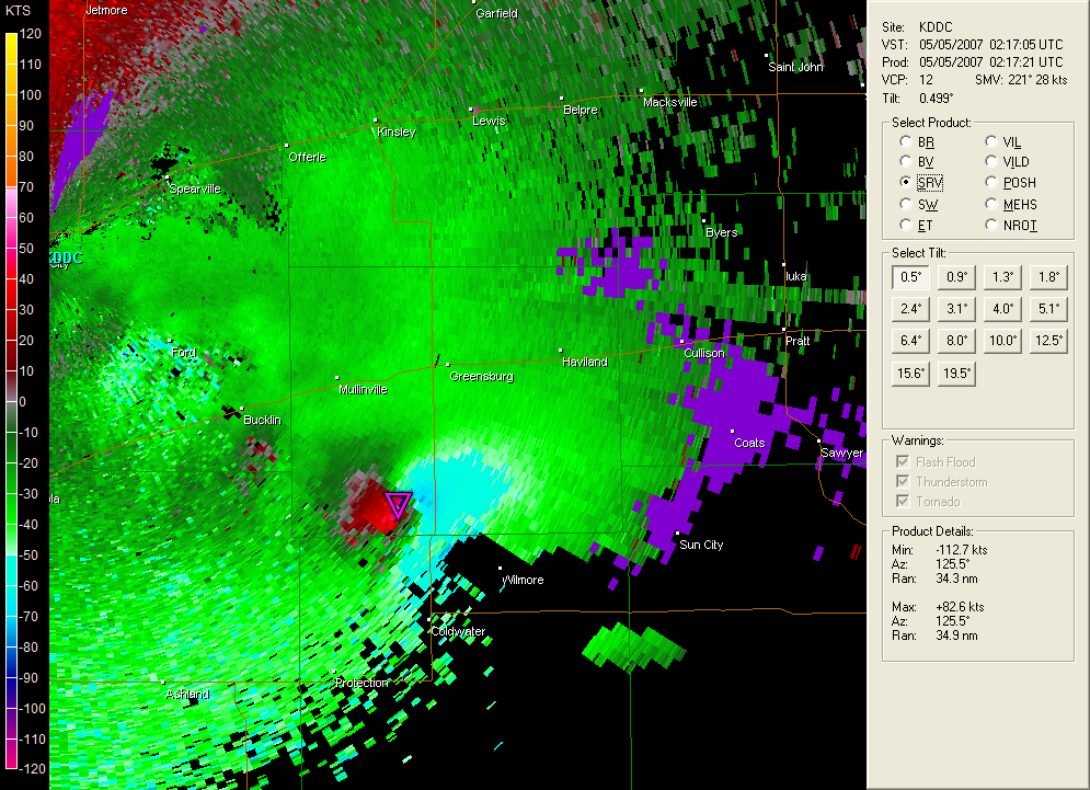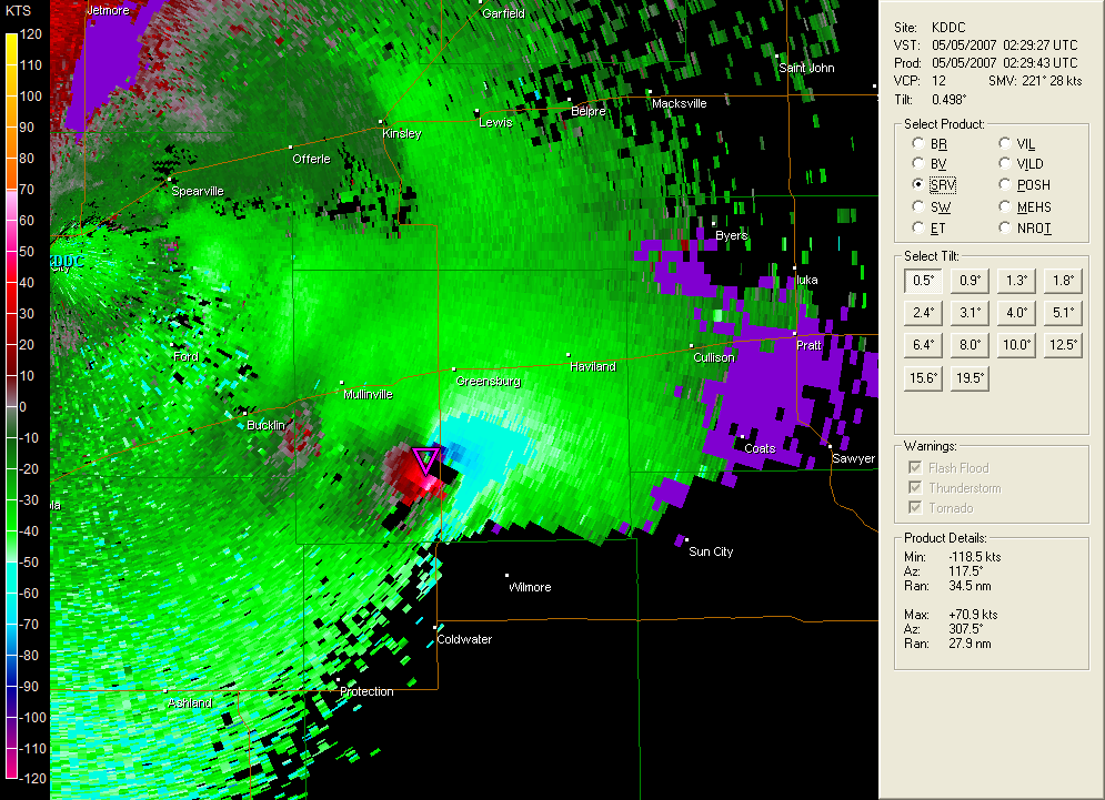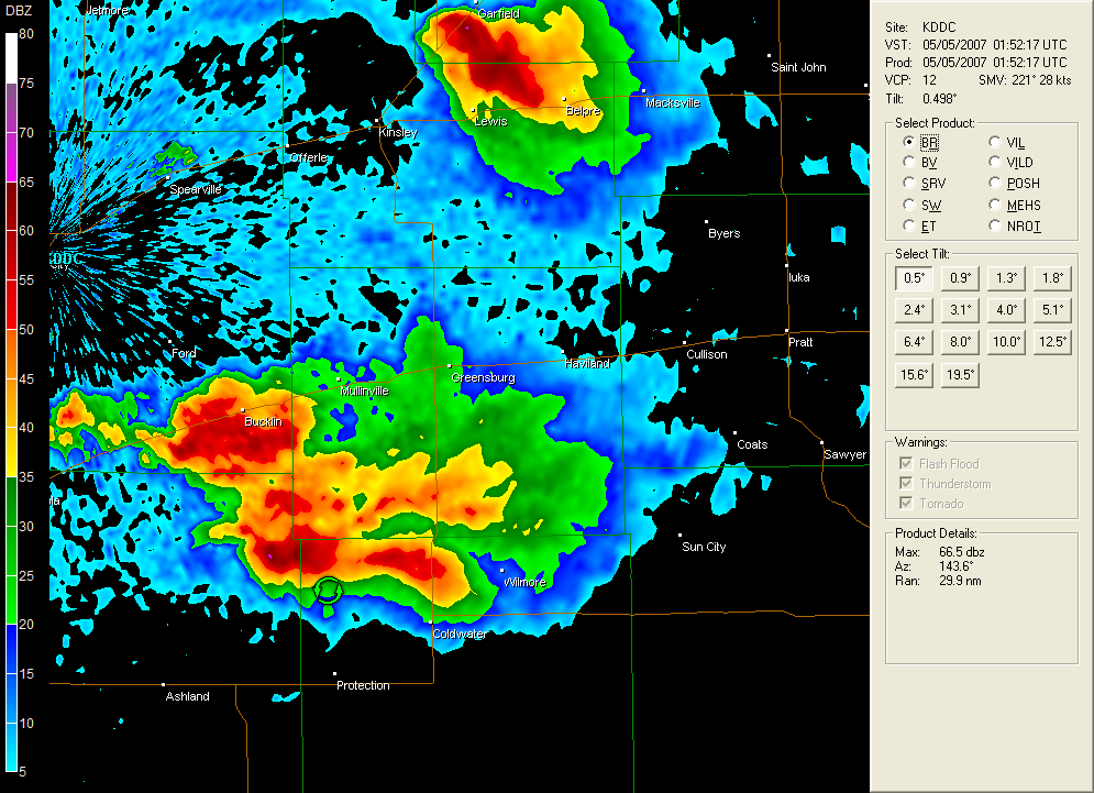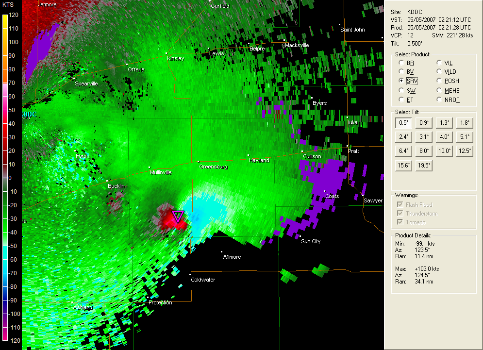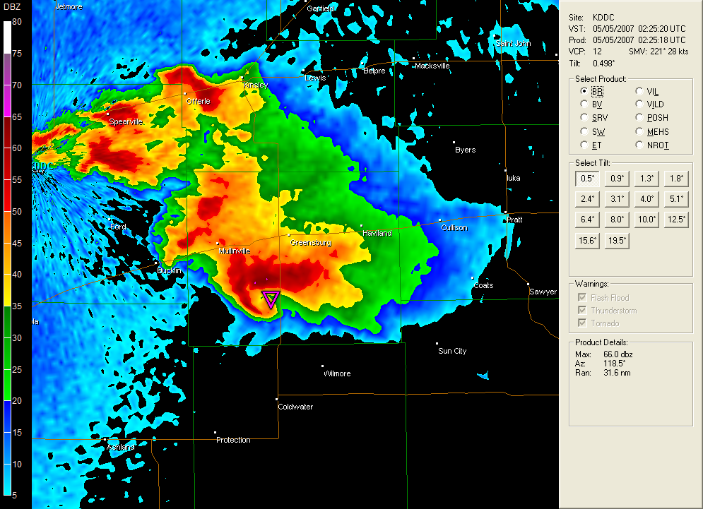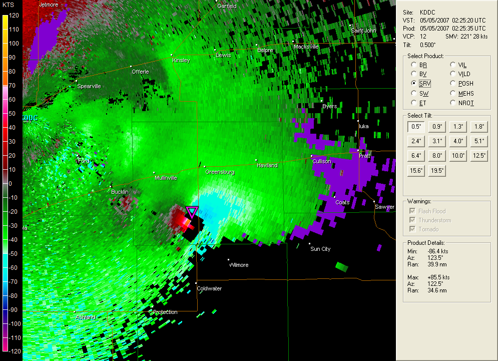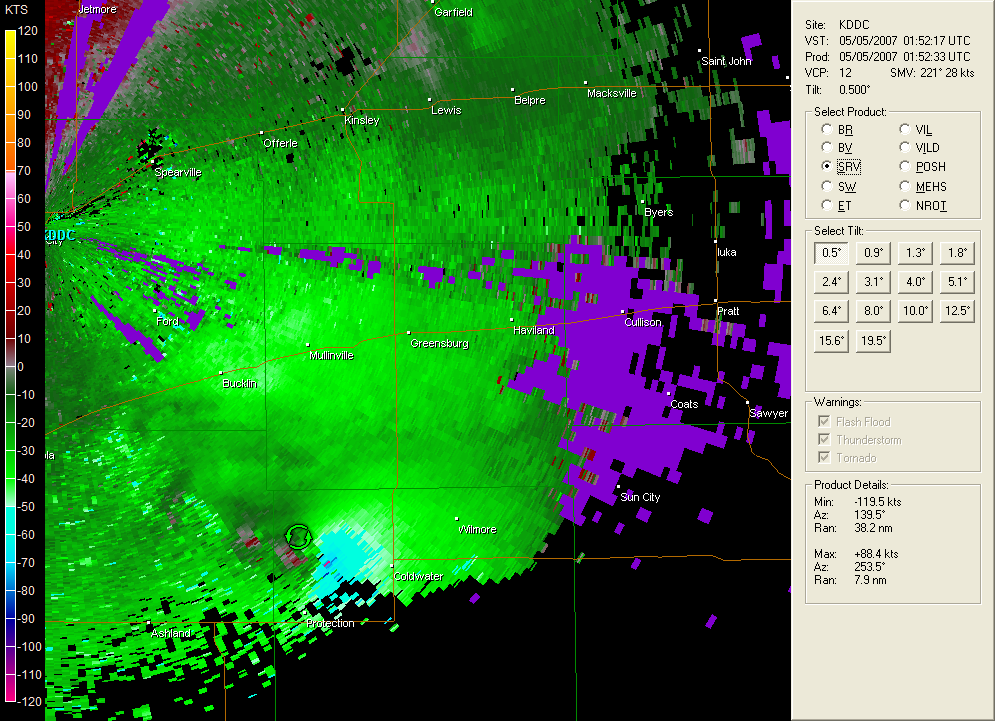 Radar imagery from the Greensburg KS tornado event (831pm-1006pm local time)