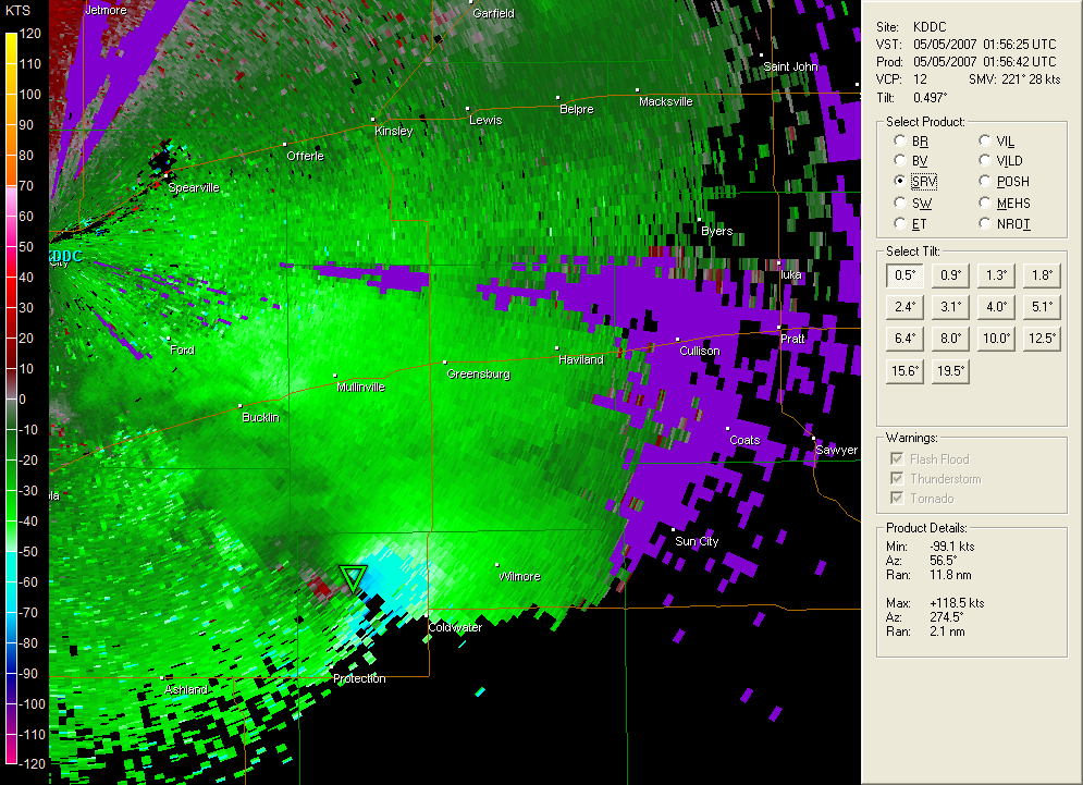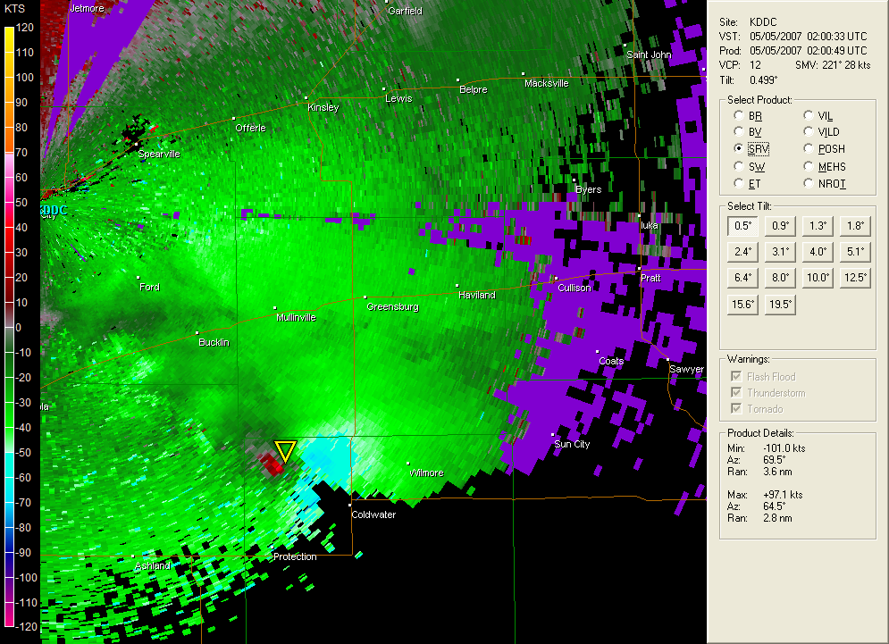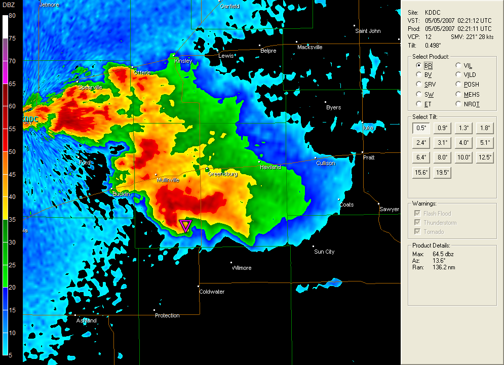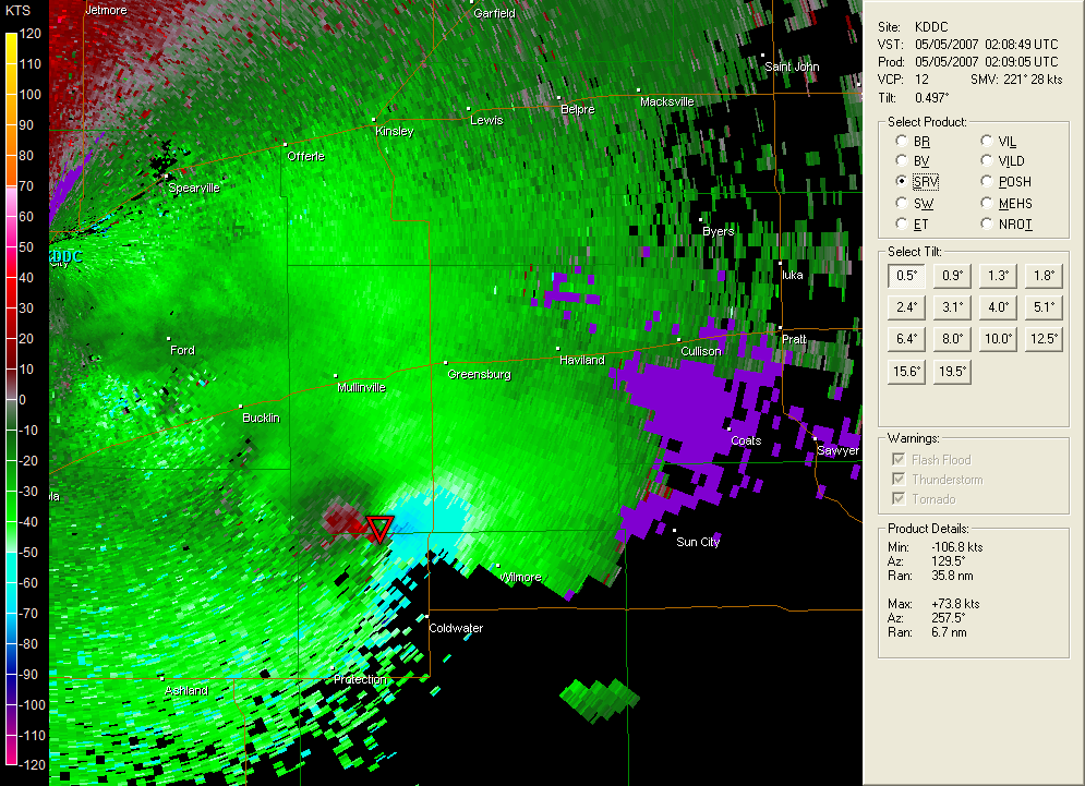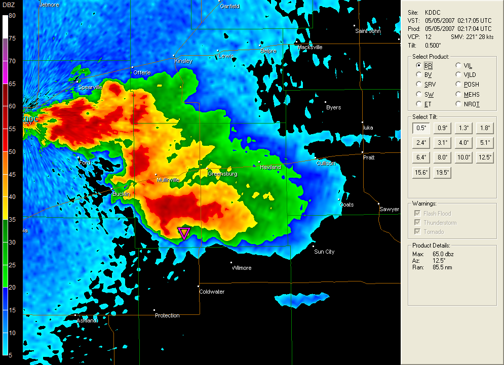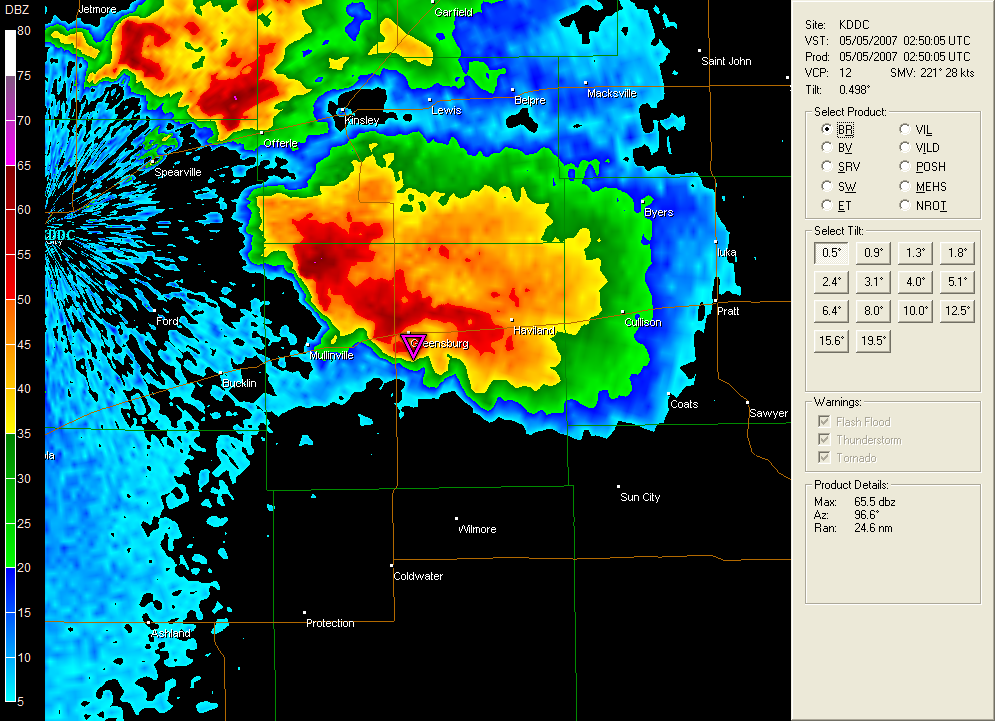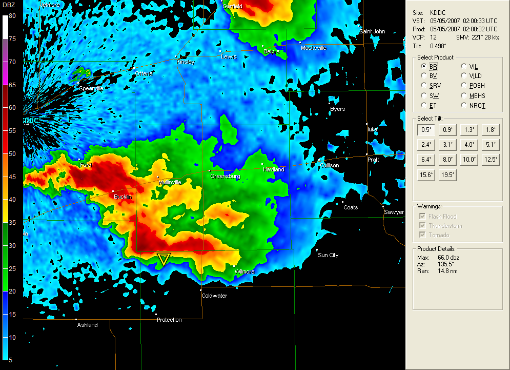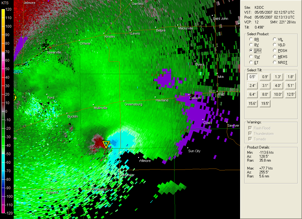 Radar imagery from the Greensburg KS tornado event (831pm-1006pm local time)