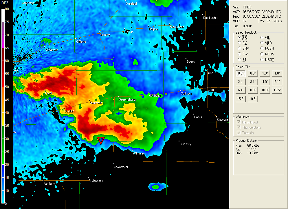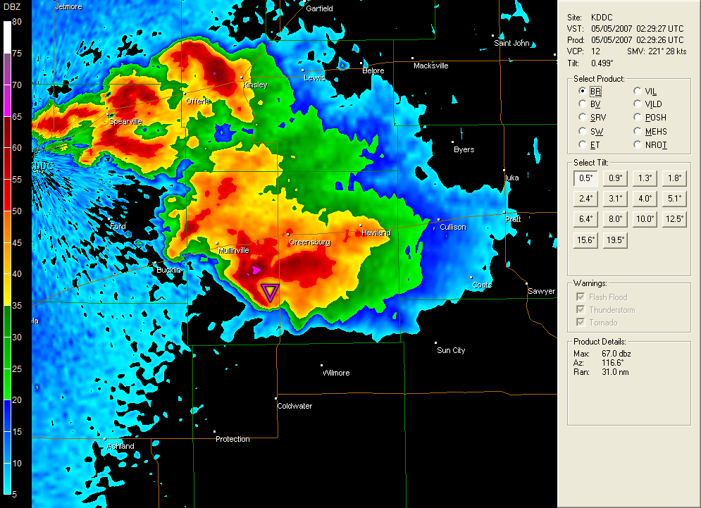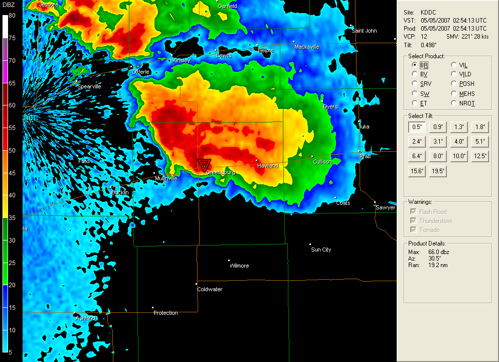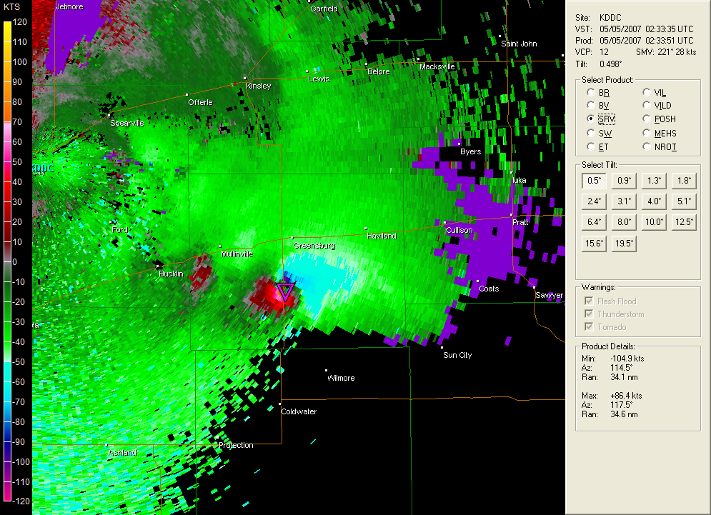 Radar imagery from the Greensburg KS tornado event (831pm-1006pm local time)