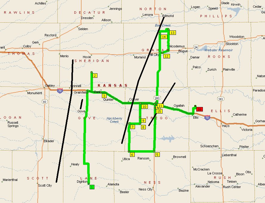 northeast of Hill City. I dropped back south of Wakeeney and observed a