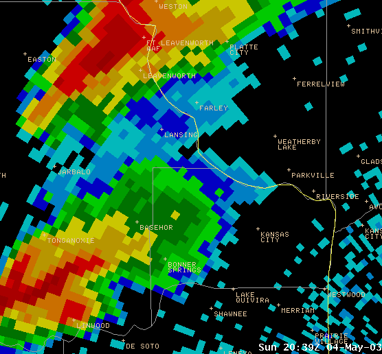| the range of emotions i experienced during this chase is indescribable. may 4 was the first and deadliest day in a week of record-breaking tornadic activity. the challenge, aside from keeping up with break-neck storm speeds, would be maximizing chase time in the restricted warm sector while being wary of river crossings and metro areas. i made it to the target town of horton, kansas by 1:00pm, and the low clouds were just beginning to break. the first storm formed rapidly to my south; it was well-structured and accompanied by quarter-sized hail, but the environment was still cold. my instinct was to rush south and east before everything outran me. i left one more cell behind near oskaloosa, and then drove back toward kansas city on i-70. visibility was worsening again, and east of lawrence i encountered moderate rain. not sure how much heating had occurred, nor of where the warm sector began and ended, i was beginning to smell a bust. as i neared the western edge of the metro, a tornado warning was issued for what was to be the northern of a pair of supercells heading toward kansas city. i plotted an intercept. not long after crossing the missouri river on i-435, reports of multiple tornadoes on i-70—in an area i'd passed through not 30 minutes before—came over the weather radio. confused, i headed back south, unable to make out any structure. eventually a monstrous inflow band came into view, which led me to a large wet updraft structure to the southwest of the parallel parkway exit. after dropping south to the next exit, i observed the most ridiculously fast and intense rfd erosion. an enormous, sloped wall cloud was subsequently revealed. tornadogenesis was underway, and appeared to stem from the rfd slot in front of the occluding wall cloud. after a period of rapid intensification, the tornado scattered into an array of multiple vorticies as it crossed the interstate. i headed east on state avenue in an attempt to pace the storm, but within five minutes lost anything more than rare glimpses through trees. the tornado had already produced brief f4 damage. after trailing behind the storm for over an hour, i turned south in pursuit of the next supercell. i gave up somewhere southeast of belton; had i persisted i would have caught it eventually, as it was longitudinally well behind the kansas city area supercells. |